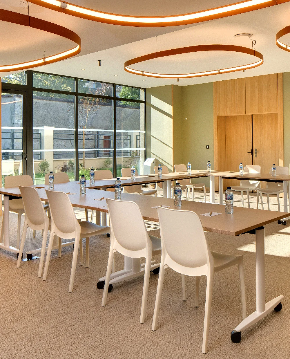 Choose from two well-equipped and air-conditioned conference rooms, one 27 m² and the other 86 m², complete with paperboard, screen, video-projector, Wi-Fi (fibre optic), private toilets, writing material, water, sweet snacks, etc.